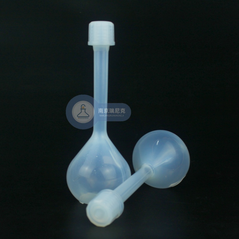 2.Teflon PFA容量瓶是一个透明的长颈瓶,瓶体为梨形,便于摇荡液体和洗刷,填补了国内PFA容量瓶的市场空缺